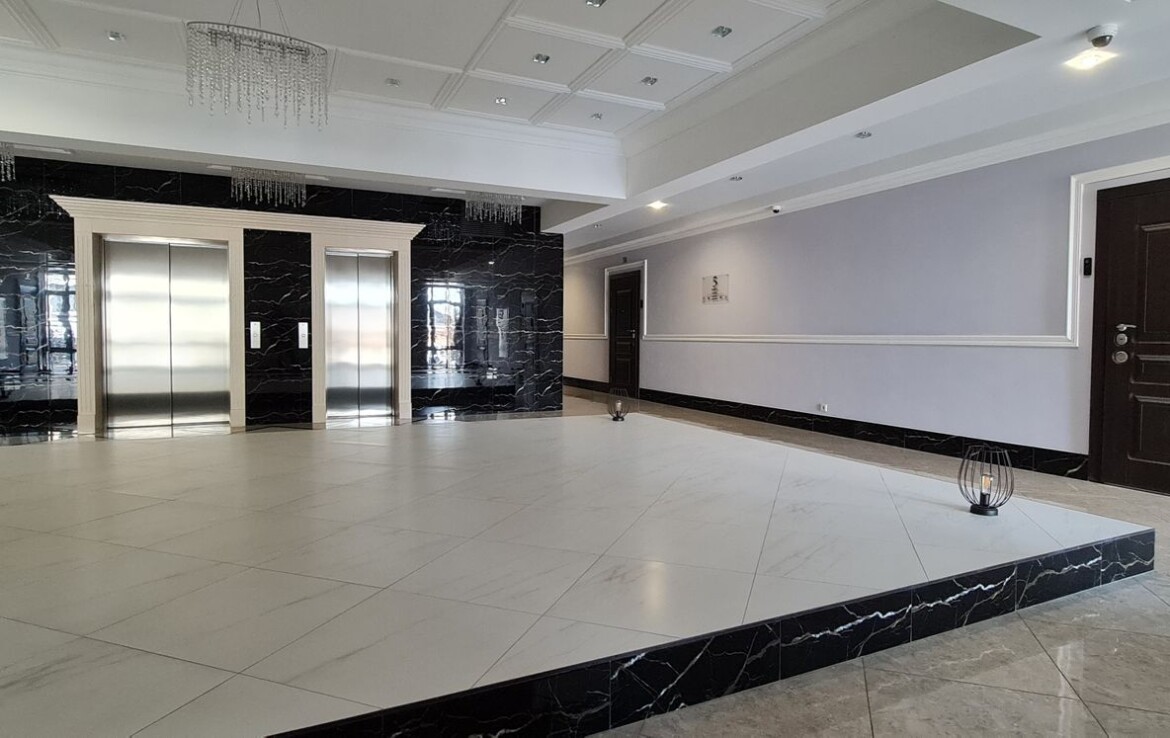 Загальна площа – 84.2 кв.м., житлова площа – 46.6 кв.м., кухня– 31.2 кв.м., санвузол 2; 5 поверх / 9 поверхового будинку.